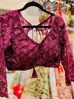 Stylish maroon net blouse with...