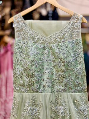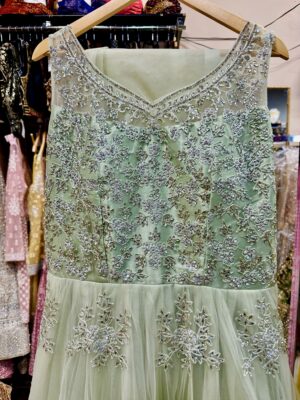 Light Pistachio Sea Green Silver Embroidered long dress