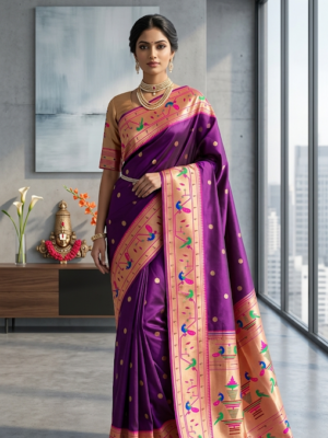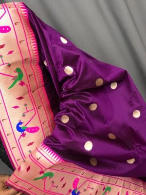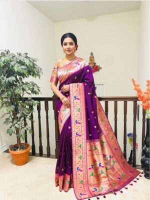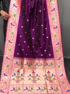 Purple Pure Silk Paithani Saree or Pythani Silk Saree