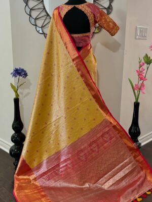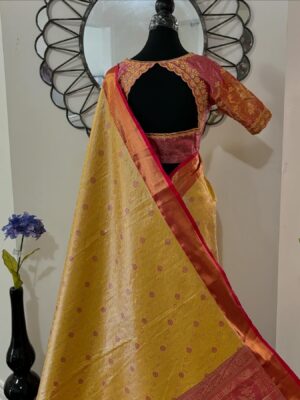 Banarasi party wear cocktail pure silk banarasi tissue saree paired up with pretty designer Blouse fits 32-46