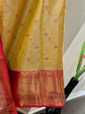Pure Banarasi Pattu saree with zari butta weaving on all over the saree weaving border floral All over