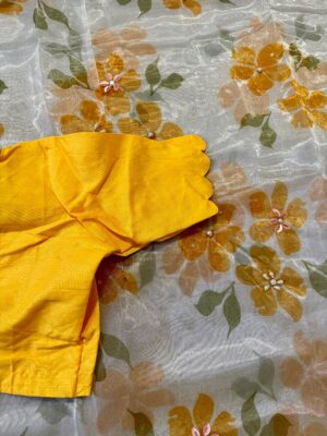 Beautiful Banarasi Organza with elbow length ready to wear designer blouse fit to 32 to 44