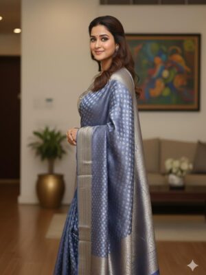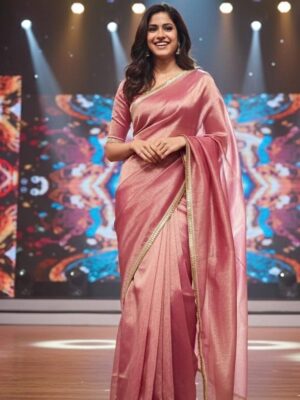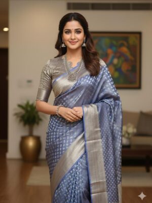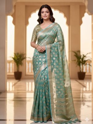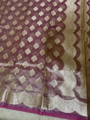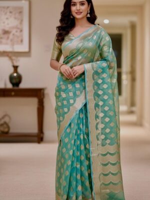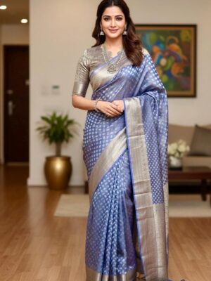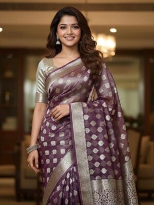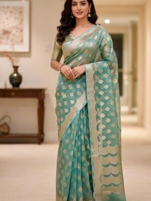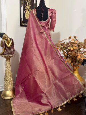 Banarasi Pure Silk party wear cocktail crush tissue saree paired up with pretty designer Blouse fits 32-46