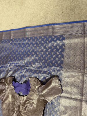 Beautiful banarasi silk saree Aqua and Royal blue paired up with beautiful embroidery blouse fits to 32 to 46 in beautiful rare colors all over jaal. Cocktails