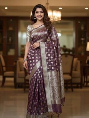Beautiful coffee color Pure Silk Banarasi floral party wear saree
