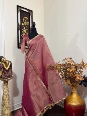 Pink Tissue Zari Kota Pure Silk Saree with Pythani or Paithani Zari borders and beautifully done blouse paired up with pretty blouse fits up to 32 to 46