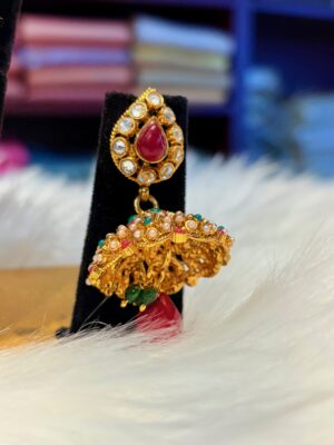 Earrings: Jhumkas, studs, danglers, chandbalis, and modern hoops