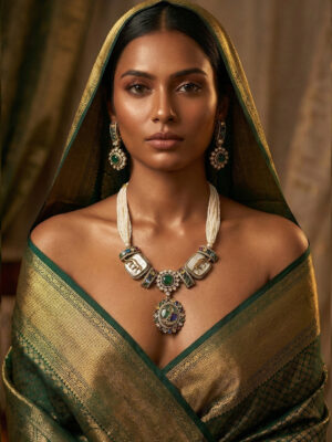 Desi jewelry dates back thousands of years, with evidence of elaborate ornaments found in ancient South-Asian civilizations. From royal Mughal designs to temple jewelry, regional variations have contributed to a rich diversity in styles and techniques. Jewelry has always played a significant role in South-Asian culture, marking social status, religious rituals, and celebrations while symbolizing beauty and prosperity.