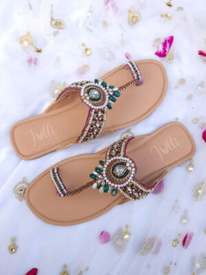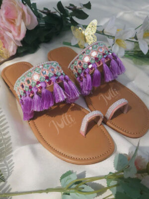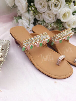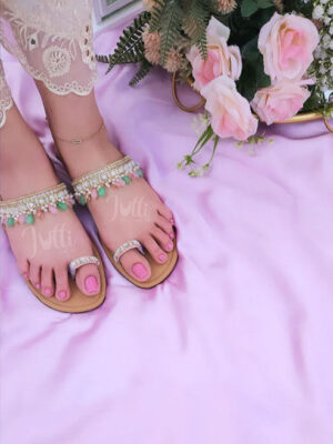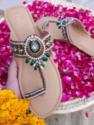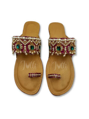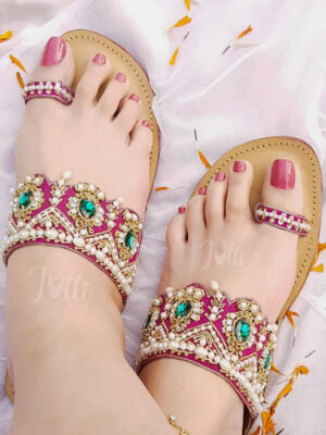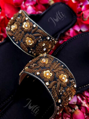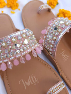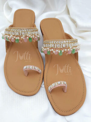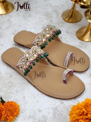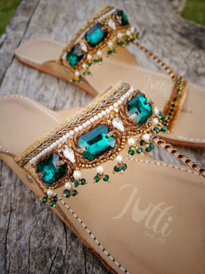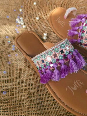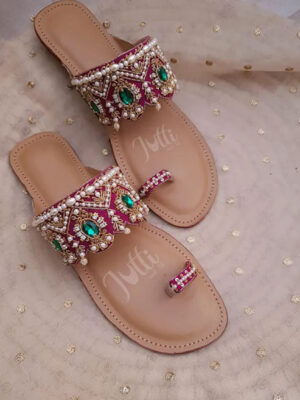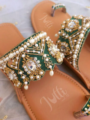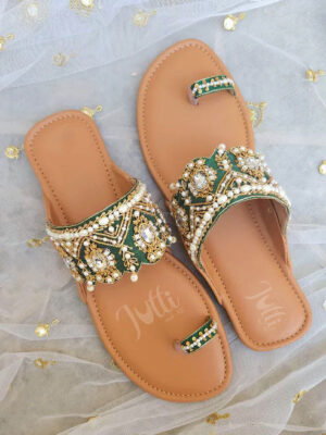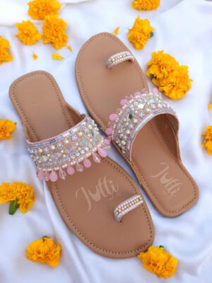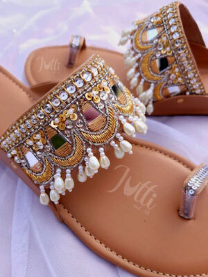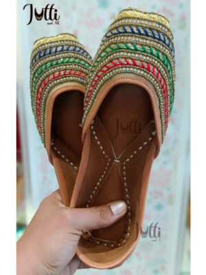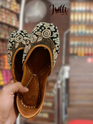Embroidered Juttis: Featuring threadwork, zari, sequins, beads, or mirror embellishments for festive and bridal occasions.
