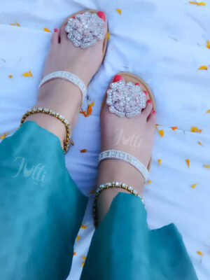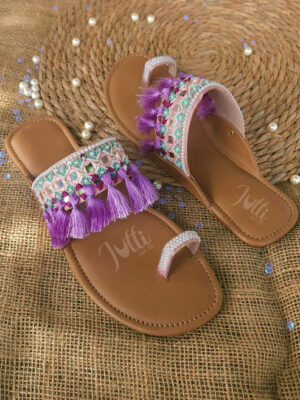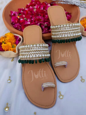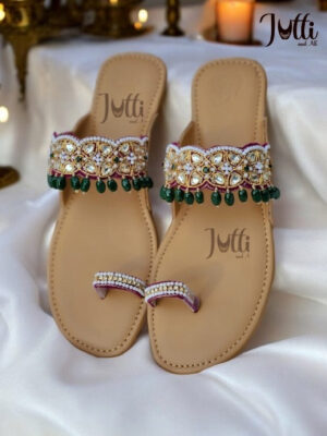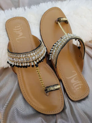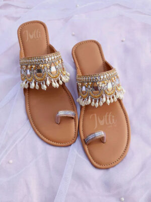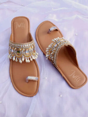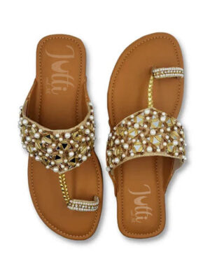 Juttis are handcrafted slip-on shoes traditionally made from leather, fabric, or synthetic materials. They are celebrated for their intricate embroidery, mirror work, sequins, and bead embellishments. Lightweight and flexible, juttis are comfortable for long wear and complement a wide range of ethnic outfits including sarees, lehengas, salwar suits, and kurtas. The flat soles and soft inner lining make them both practical and stylish.