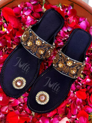 Juttis have a rich history in India, tracing back to the Mughal era when they were worn by royalty and aristocrats. Each region developed its own style — from the Punjabi phulkari embroidery in Punjab to mirror work in Rajasthan and colorful zari designs in Gujarat. Over centuries, juttis evolved from traditional footwear to a global fashion statement, admired for their artisanal craftsmanship and aesthetic appeal.