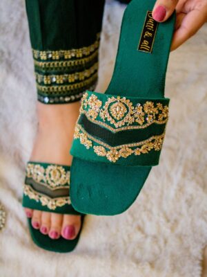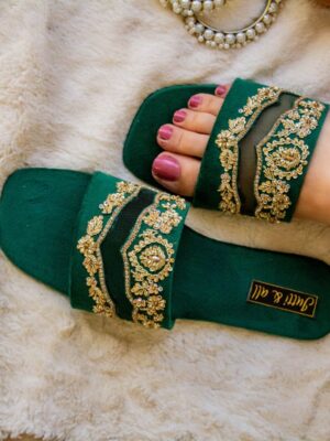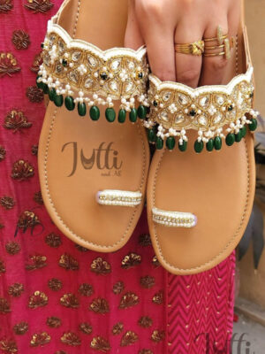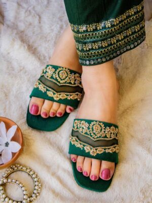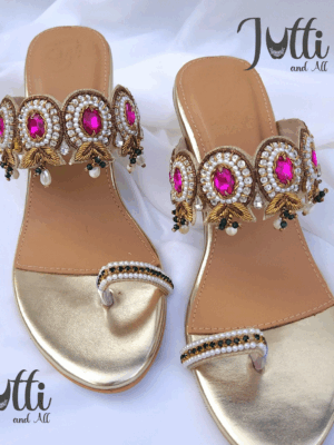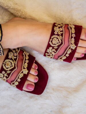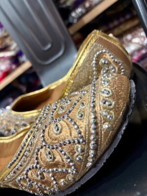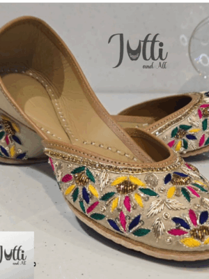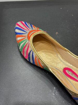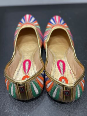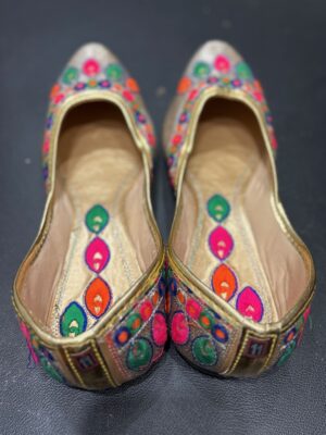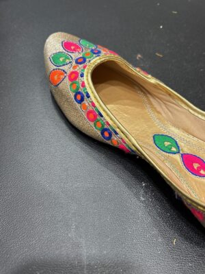 Embroidered Juttis: Featuring threadwork, zari, sequins, beads, or mirror embellishments for festive and bridal occasions.