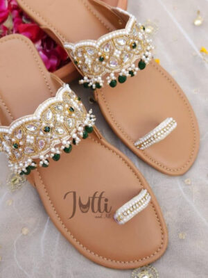 Juttis are handcrafted slip-on shoes traditionally made from leather, fabric, or synthetic materials. They are celebrated for their intricate embroidery, mirror work, sequins, and bead embellishments. Lightweight and flexible, juttis are comfortable for long wear and complement a wide range of ethnic outfits including sarees, lehengas, salwar suits, and kurtas. The flat soles and soft inner lining make them both practical and stylish.