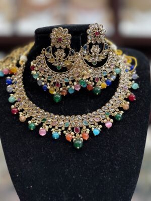 Multi Color Stone Pearl Neckla...