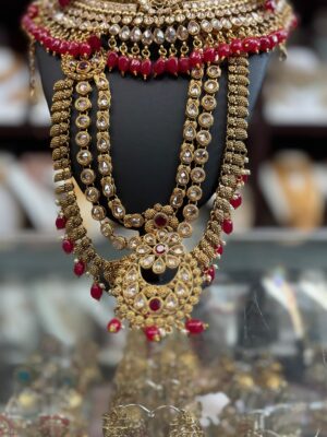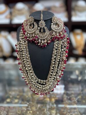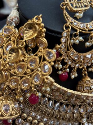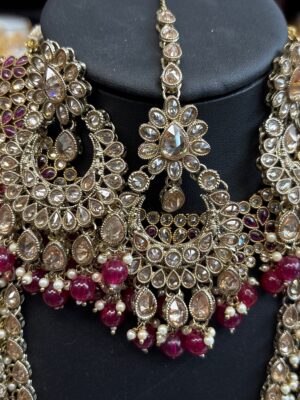 Gold Maroon Red White Stone Pe...