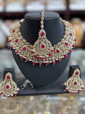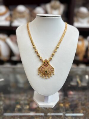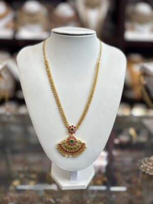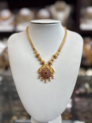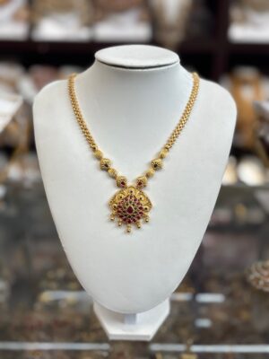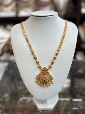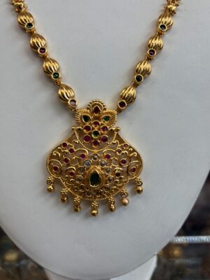Gold Necklace with Red Green s...