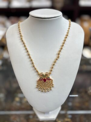 Gold Necklace with Double Peac...