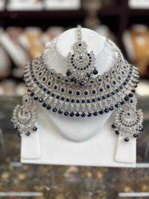 Silver Blue Choker Necklace Ea...