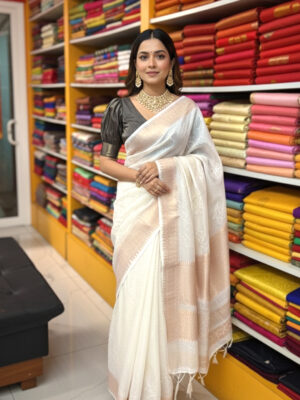 Explore our curated collection of Banarasi Sarees, Kanjeevaram Sarees, Georgette Sarees, Chanderi Sarees, Tussar Sarees, and Katan Sarees, each crafted to elevate your style.