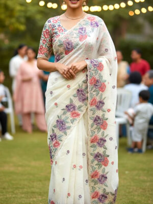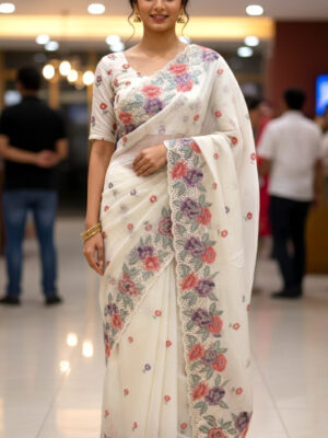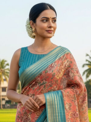 • Office & Casual Wear: Cotton, linen, printed sarees