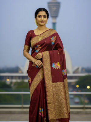 • Silk Sarees: Luxurious and ornate, ideal for weddings and festivals. Examples: Kanjivaram, Banarasi, Tussar silk.
