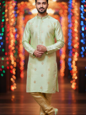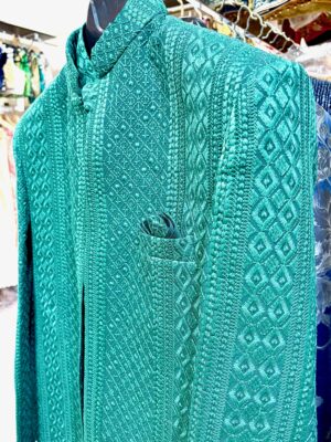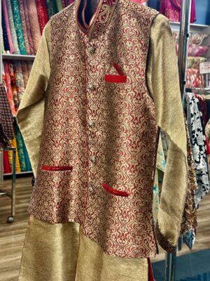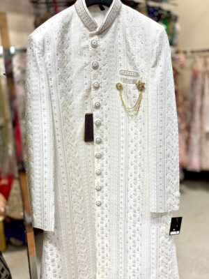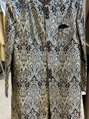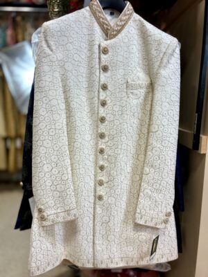 • Wedding Sherwanis: Rich, heavily embroidered, and designed to stand out on the groom. Often paired with churidar or dhoti pants.