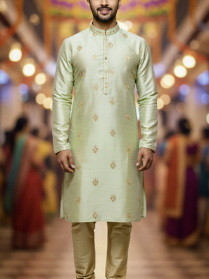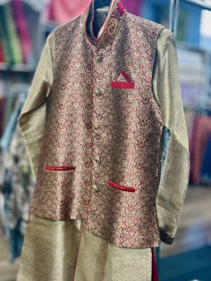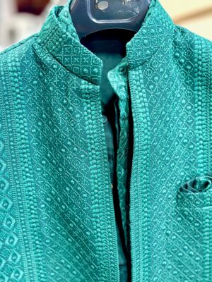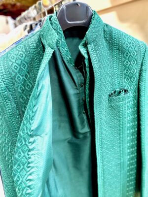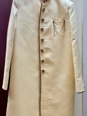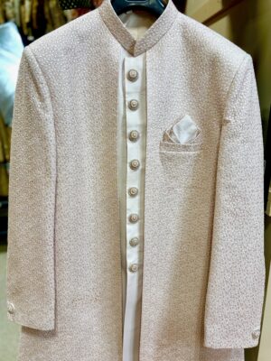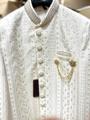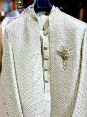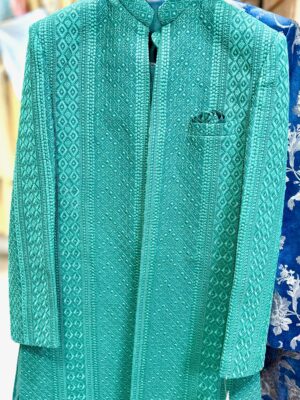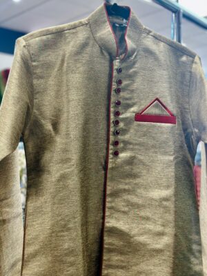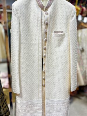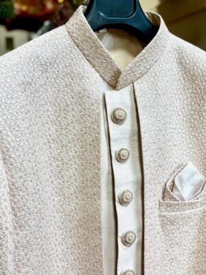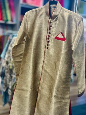 • Silk Sherwanis: Smooth, elegant, and visually rich—ideal for formal events and traditional weddings.