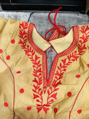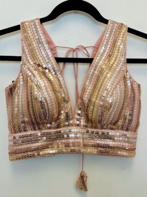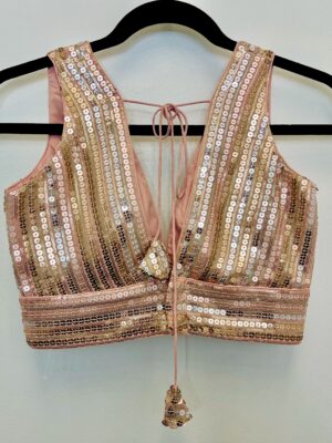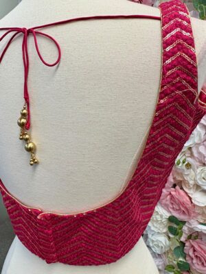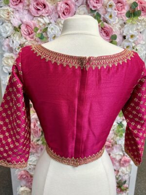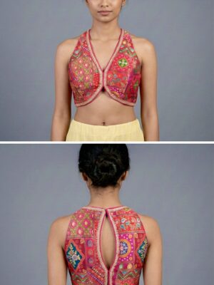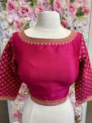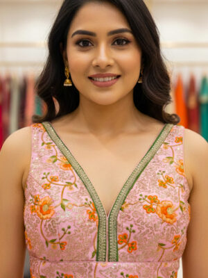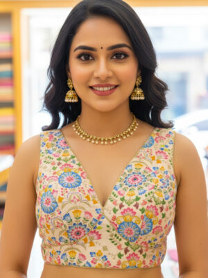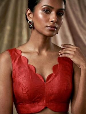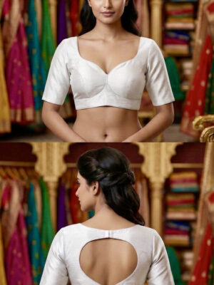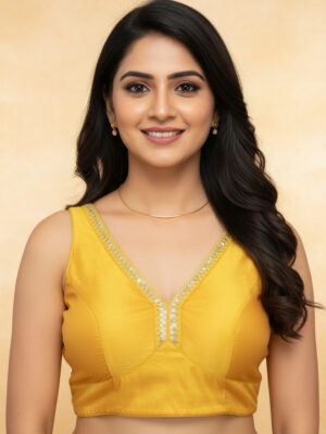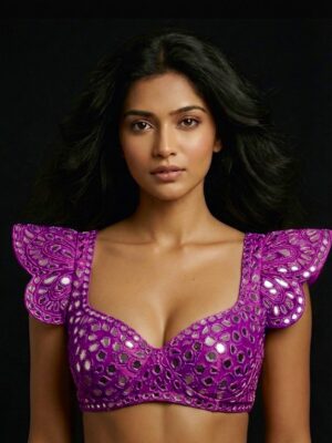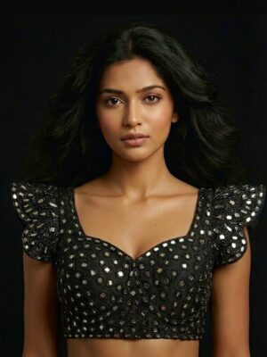 A blouse is a tailored top worn under a saree, lehenga, or ethnic gown, often designed to complement the fabric, color, and style of the outfit. The blouse not only provides structure and comfort but also adds a fashion statement with its cut, neckline, sleeve design, back style, and embellishments. Modern blouses can range from minimalistic plain designs to heavily embroidered, sequined, or mirror-worked pieces.