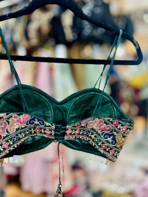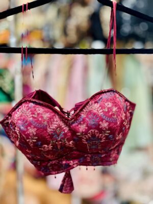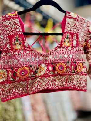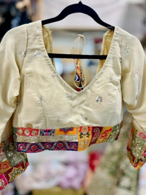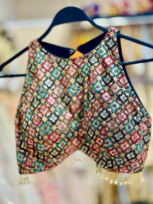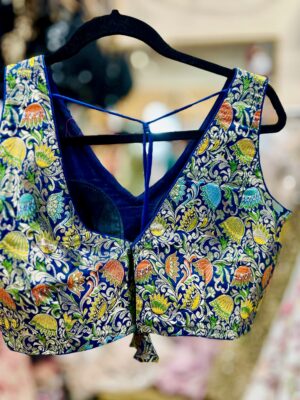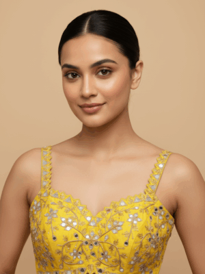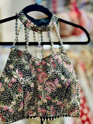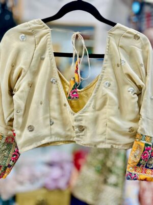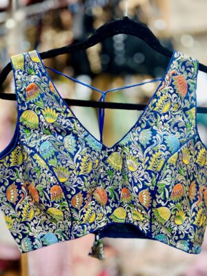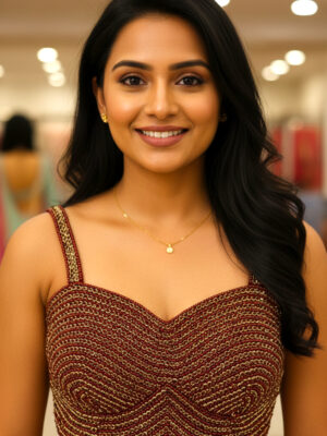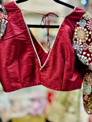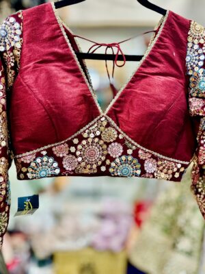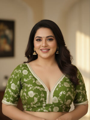 A blouse is a tailored top worn under a saree, lehenga, or ethnic gown, often designed to complement the fabric, color, and style of the outfit. The blouse not only provides structure and comfort but also adds a fashion statement with its cut, neckline, sleeve design, back style, and embellishments. Modern blouses can range from minimalistic plain designs to heavily embroidered, sequined, or mirror-worked pieces.
