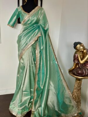Banarasi Teal gold color light...