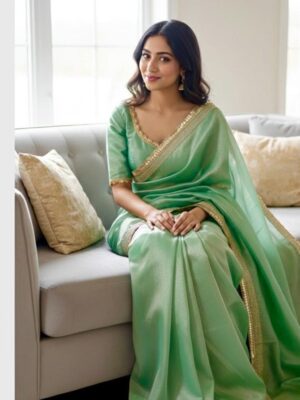Serene Sky Banarasi Tissue Sar...