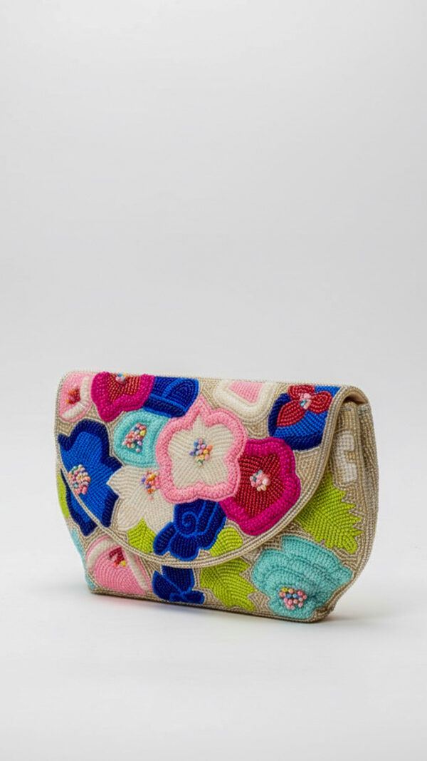 clutch a masterpiece of color and craftsmanship. Its classic envelope shape is