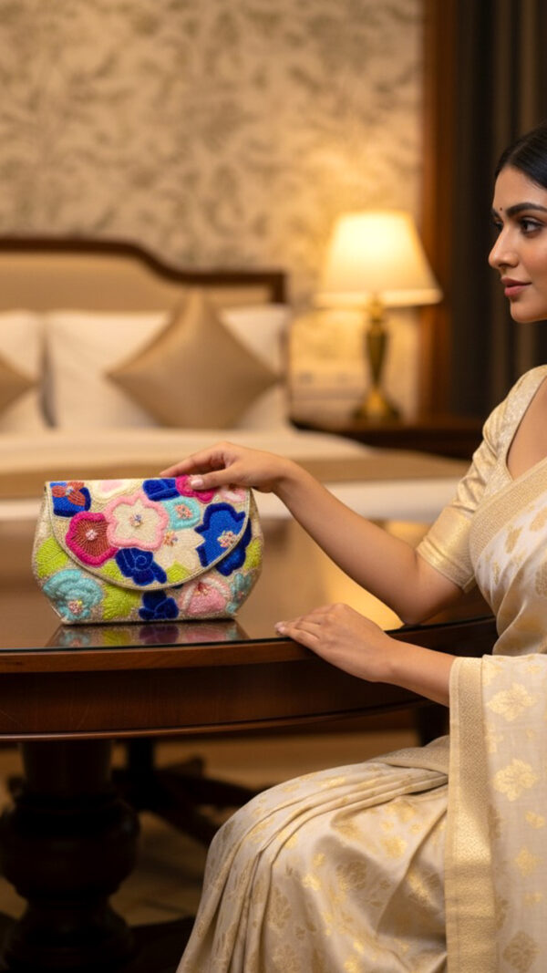 handcrafted floral clutch from Pradon Silks. A true piece of wearable art, this