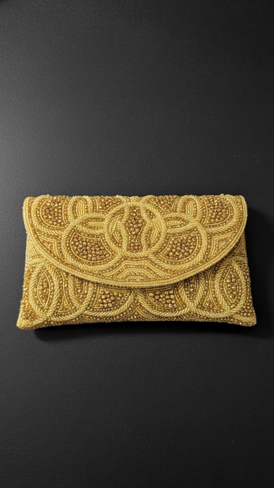 pure, unadulterated glamour with this luminous, all-gold beaded clutch from