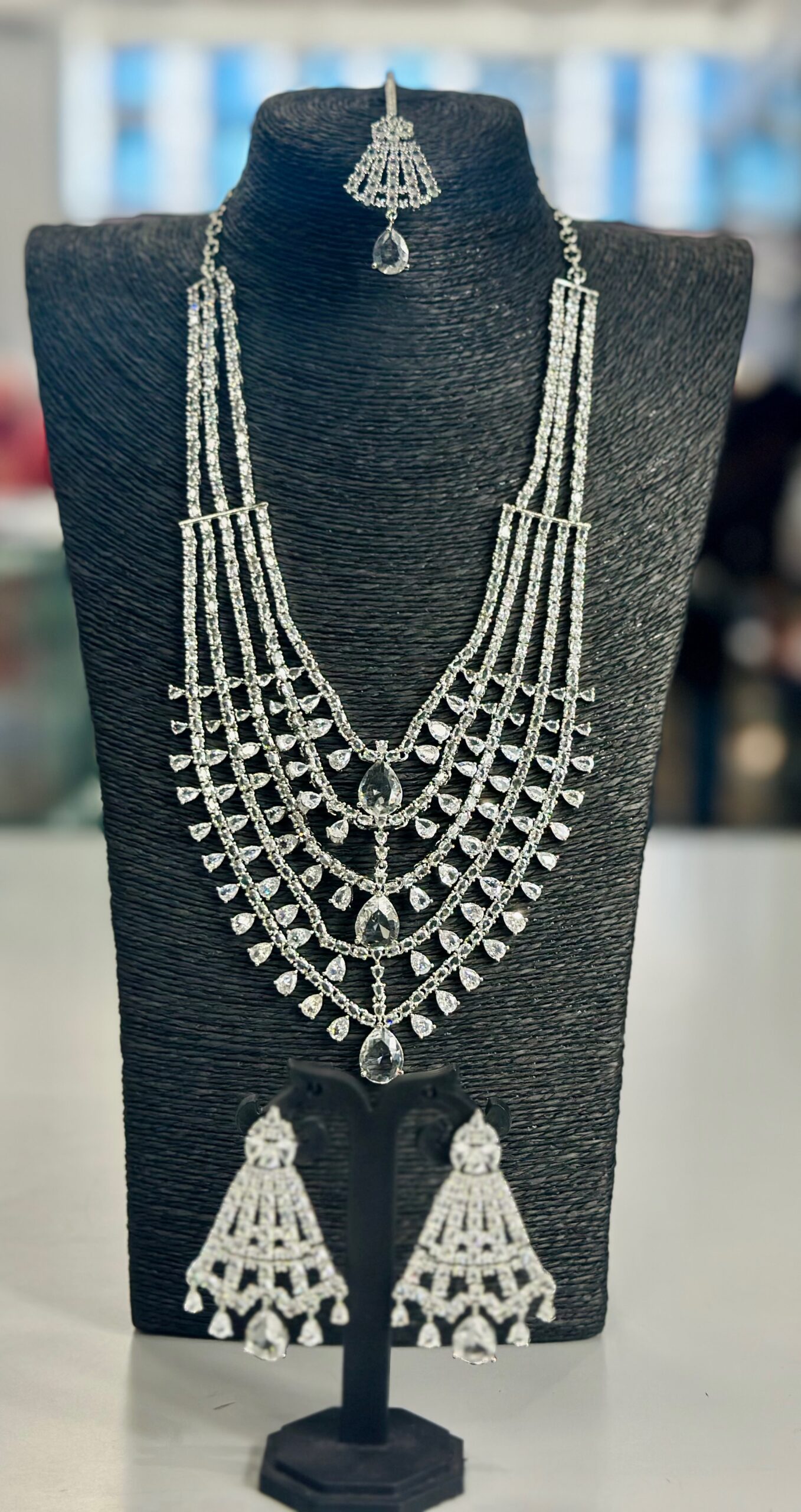Whether you’re attending a special event or adding sparkle to a festive evening, this Silver A.D. Haar Set brings glamour, grace, and brilliance to every look.