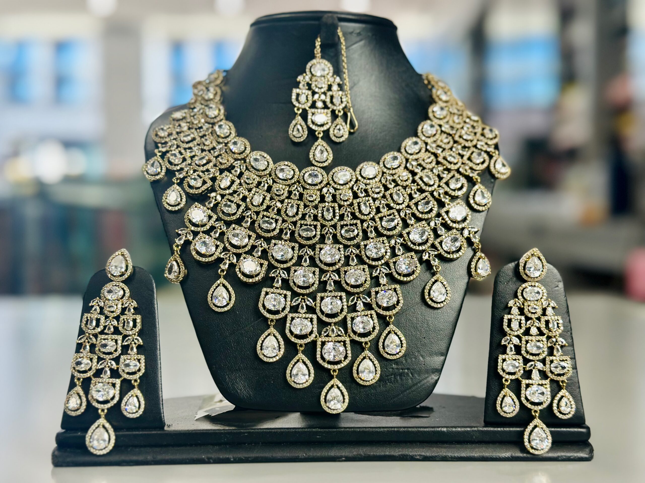 Design: Statement necklace with intricately set American Diamonds for a luxurious shine
