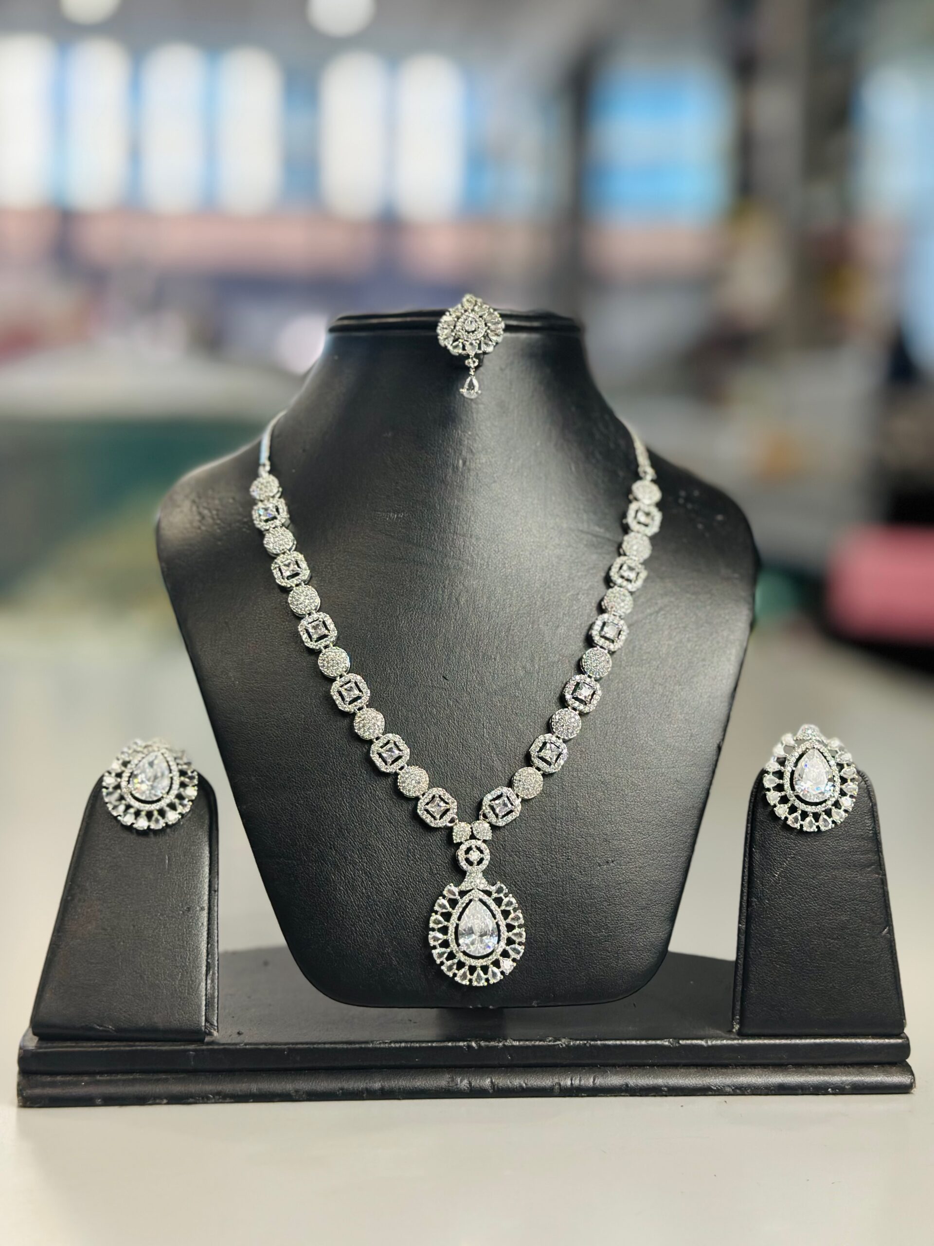 Add a touch of sparkle to your everyday elegance with this Silver A.D. Set with Tops — a must-have for the modern jewellery lover.