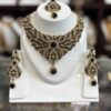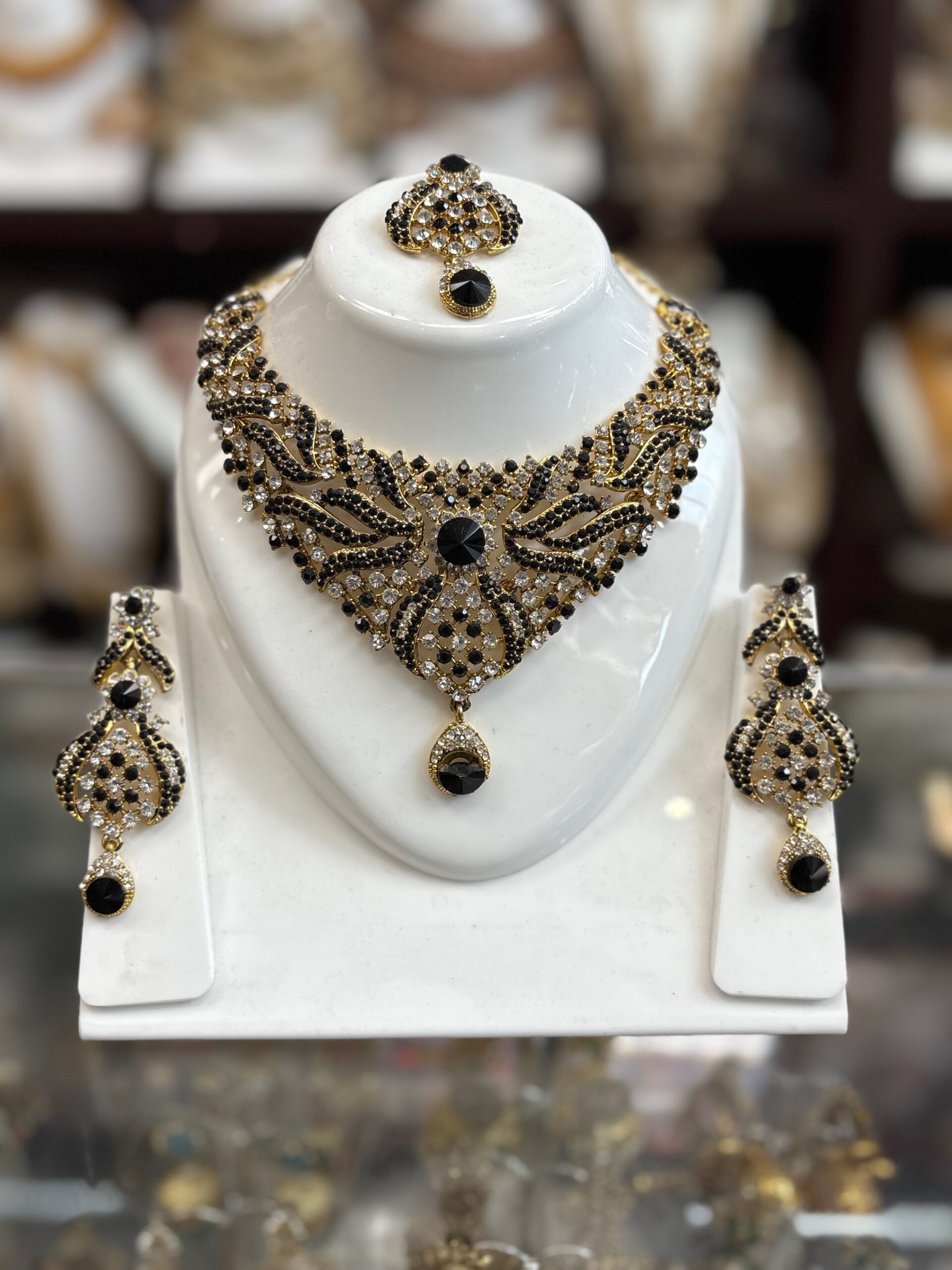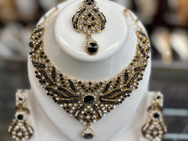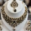 Black Gold Choker Necklace Earring Maang Tikka Black White Stone Indian Jewelry Set