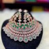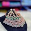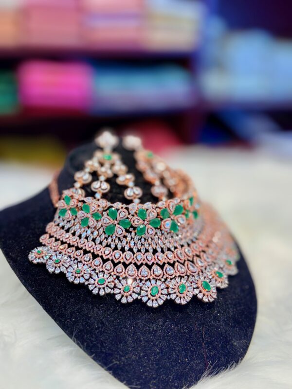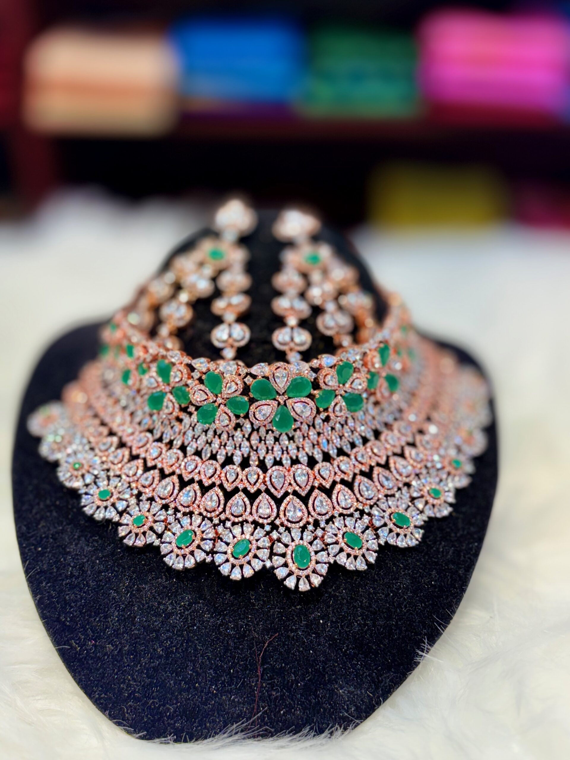 Exclusive Rose Gold Faux Diamond Emerald White Green Stones Necklace Jewelry Set