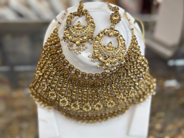 Gold Kundan Choker Necklace Earring Indian Jewelry Set