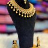 Gold Plated Kundan Necklace Choker with blue stones white pearls