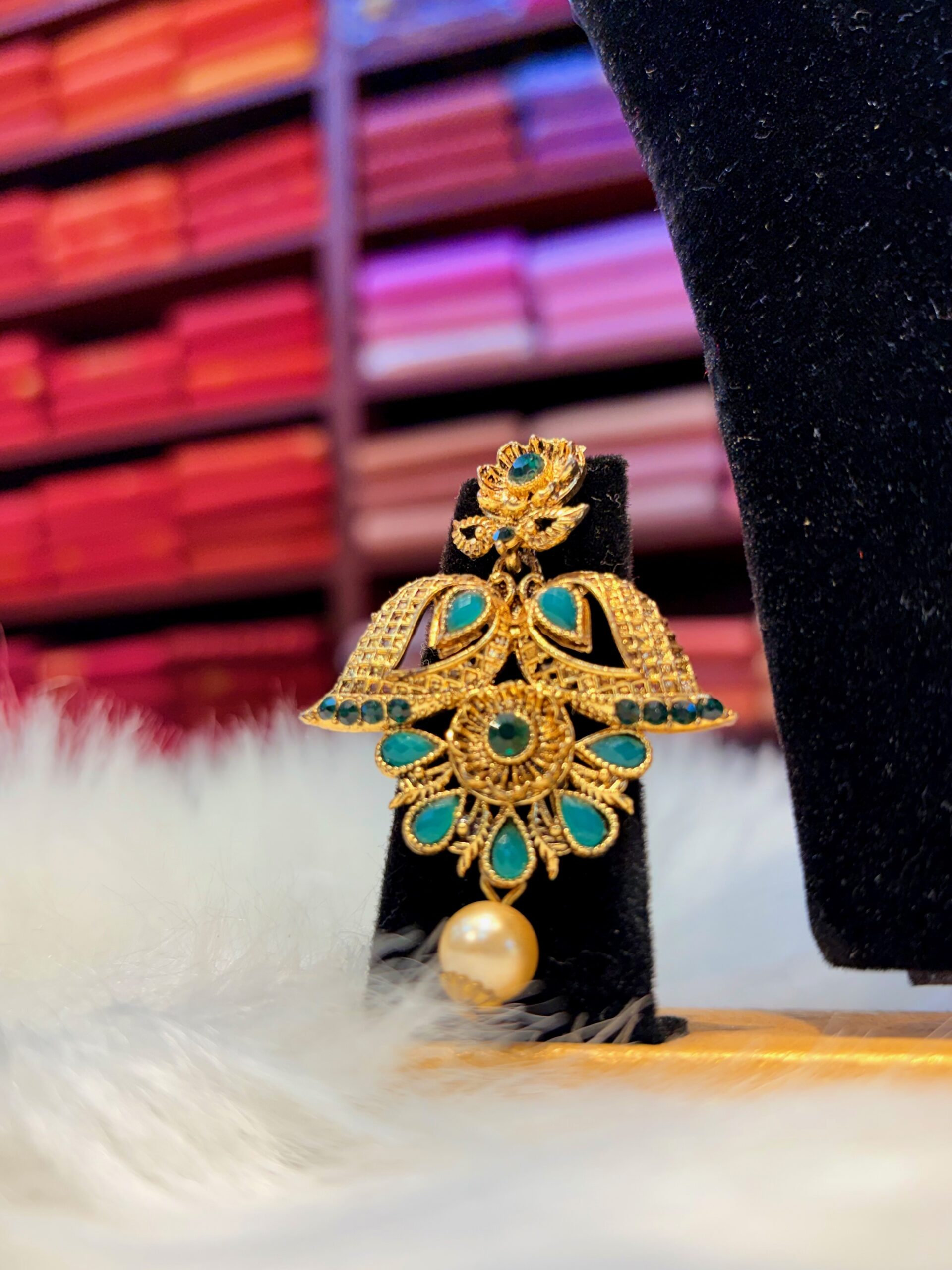 Earrings Jhumkas with blue stones white pearls