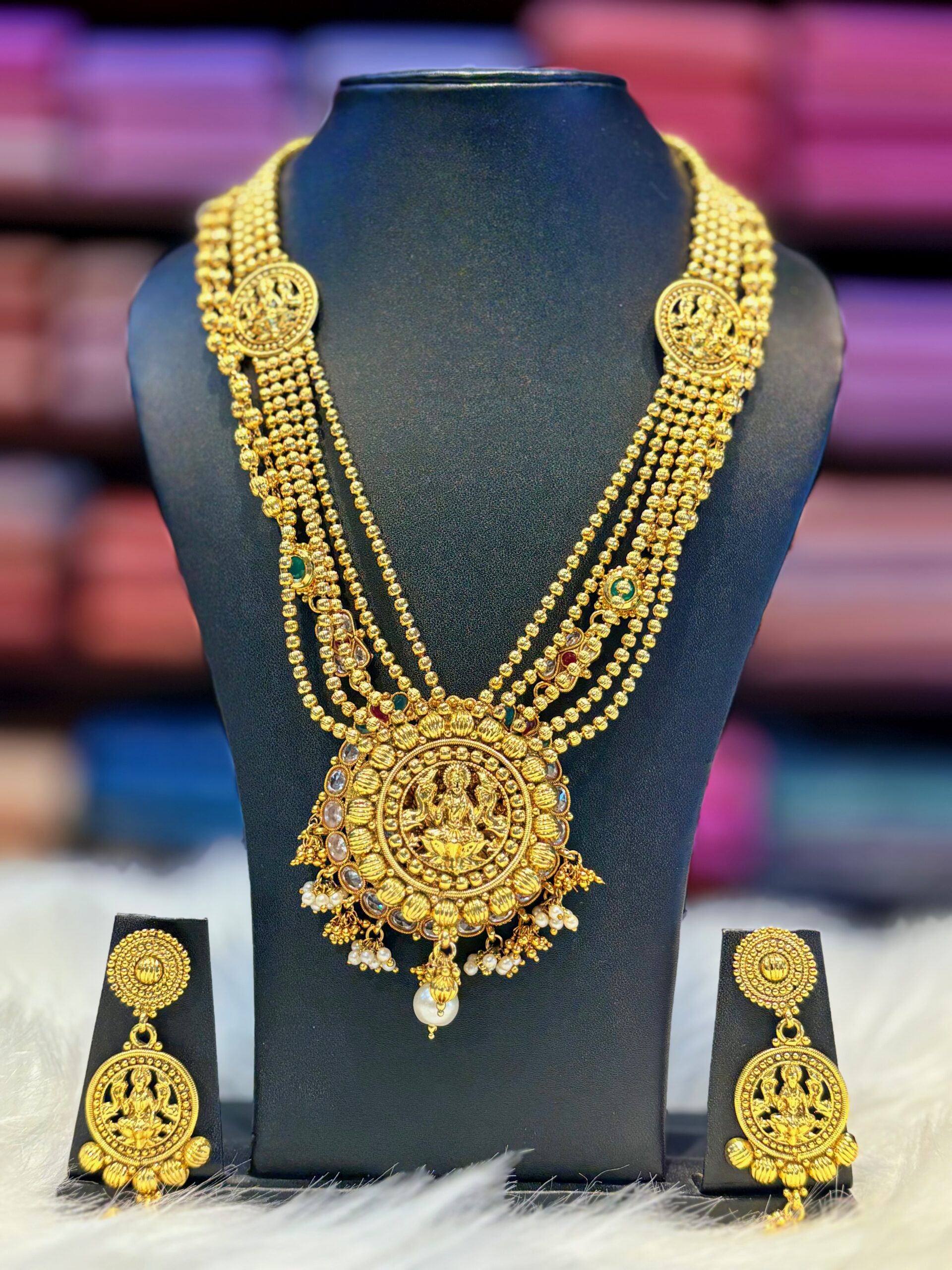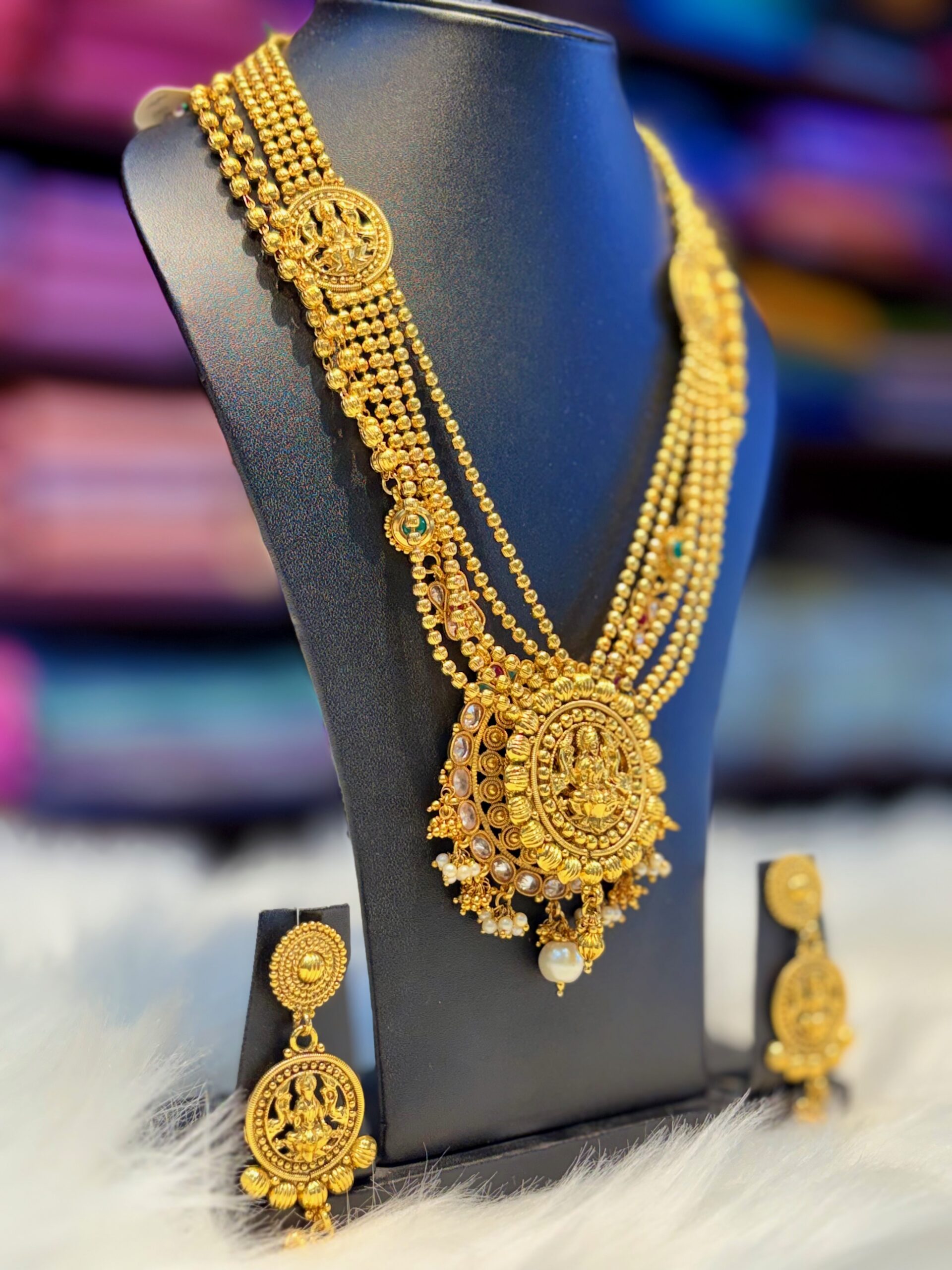 Necklace and Earrings with unique design of Goddess Lakshmi
