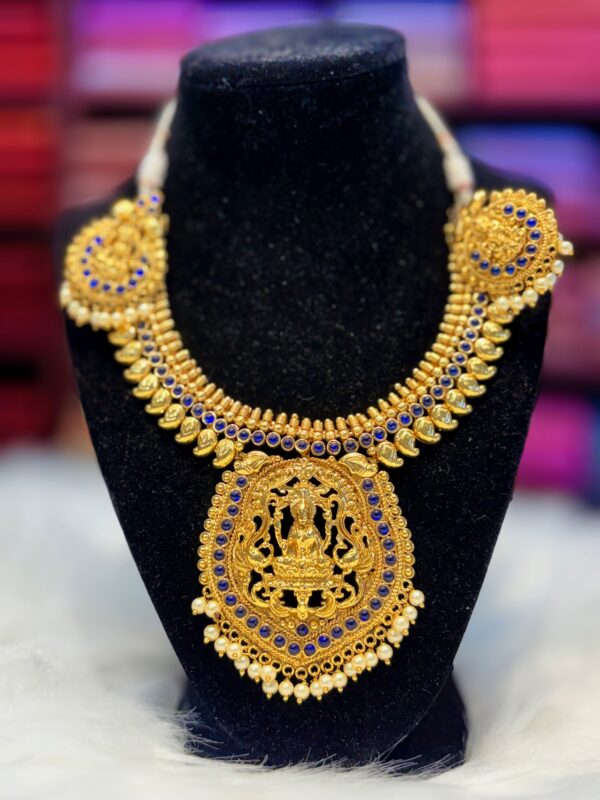 Gold Plated LakshmiWhite Blue stones White Pearls Jewelry Set