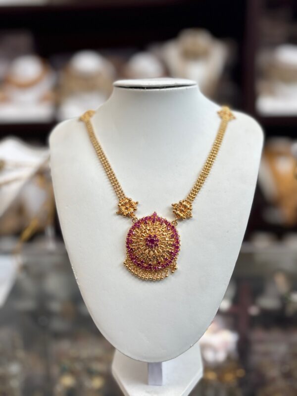 Gold Necklace with Red Pendant