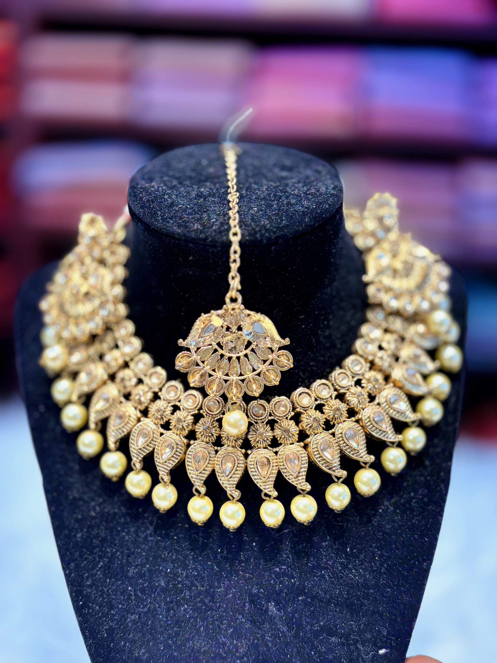 Necklace Choker, Earrings/ Jhumka, Maang Tikka/ Uchchi pattam