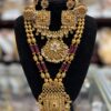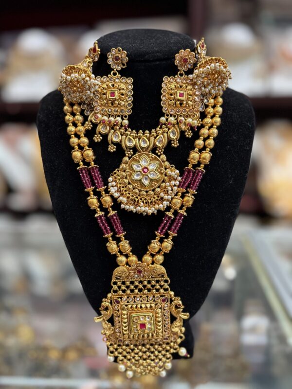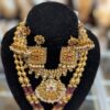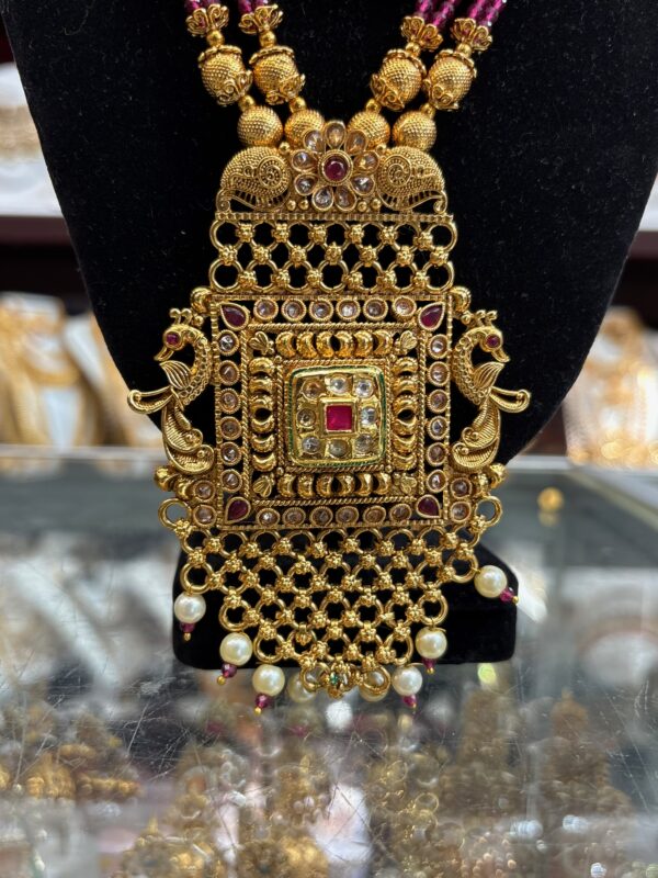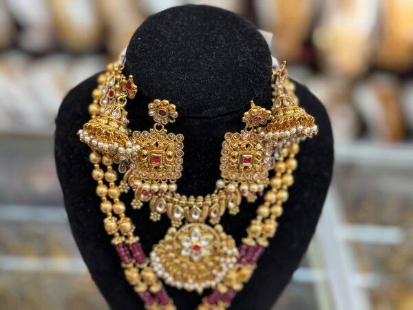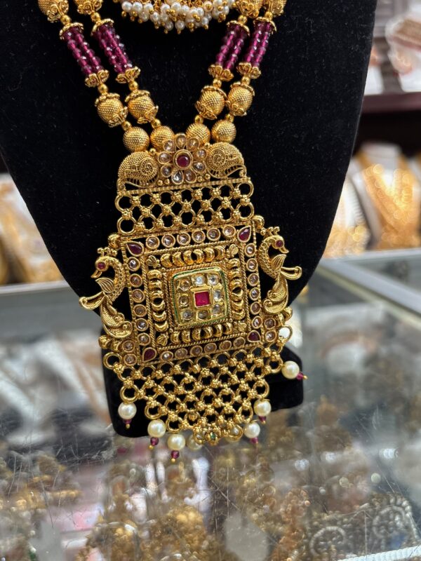 Gold Purple Pink White Stone Pearl Necklace Choker Indian Earring Jewelry Set