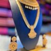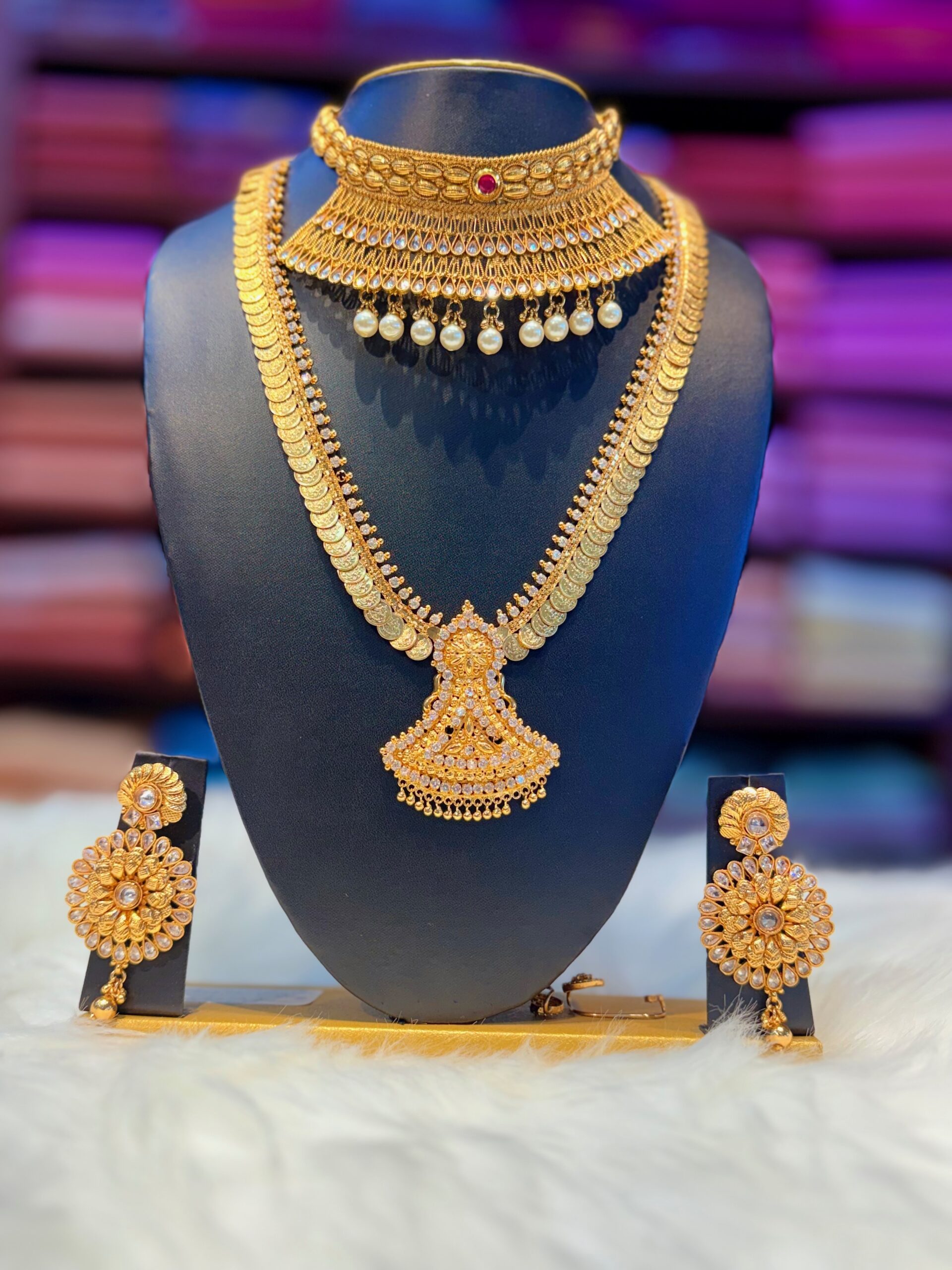 Gold Plated Jewelry set – Gold Kundan White Stone White Pearl Necklace Choker Earrings Jhumka Set