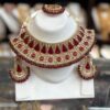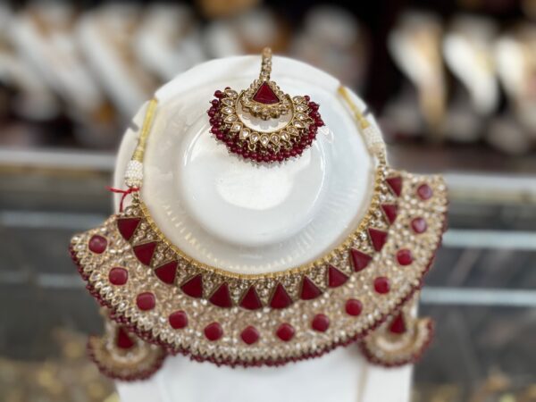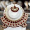 Maroon Red Gold Kundan Choker Necklace Earring Maang Tikka White Stone Meenakari Indian Jewelry Set