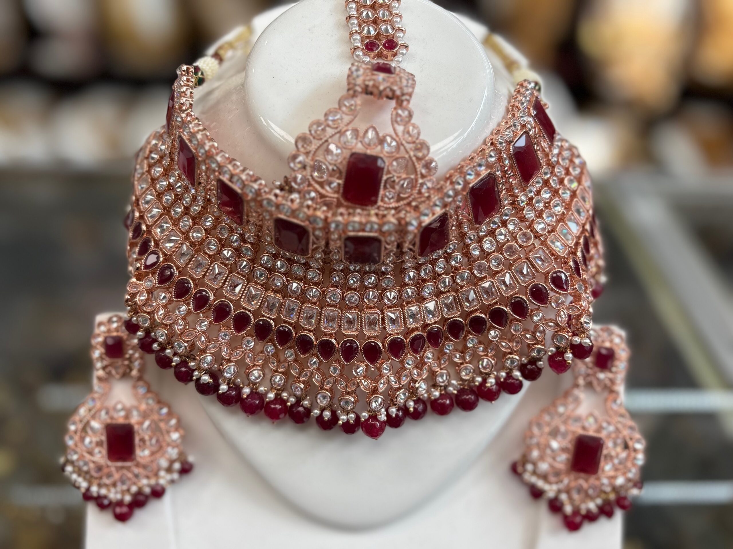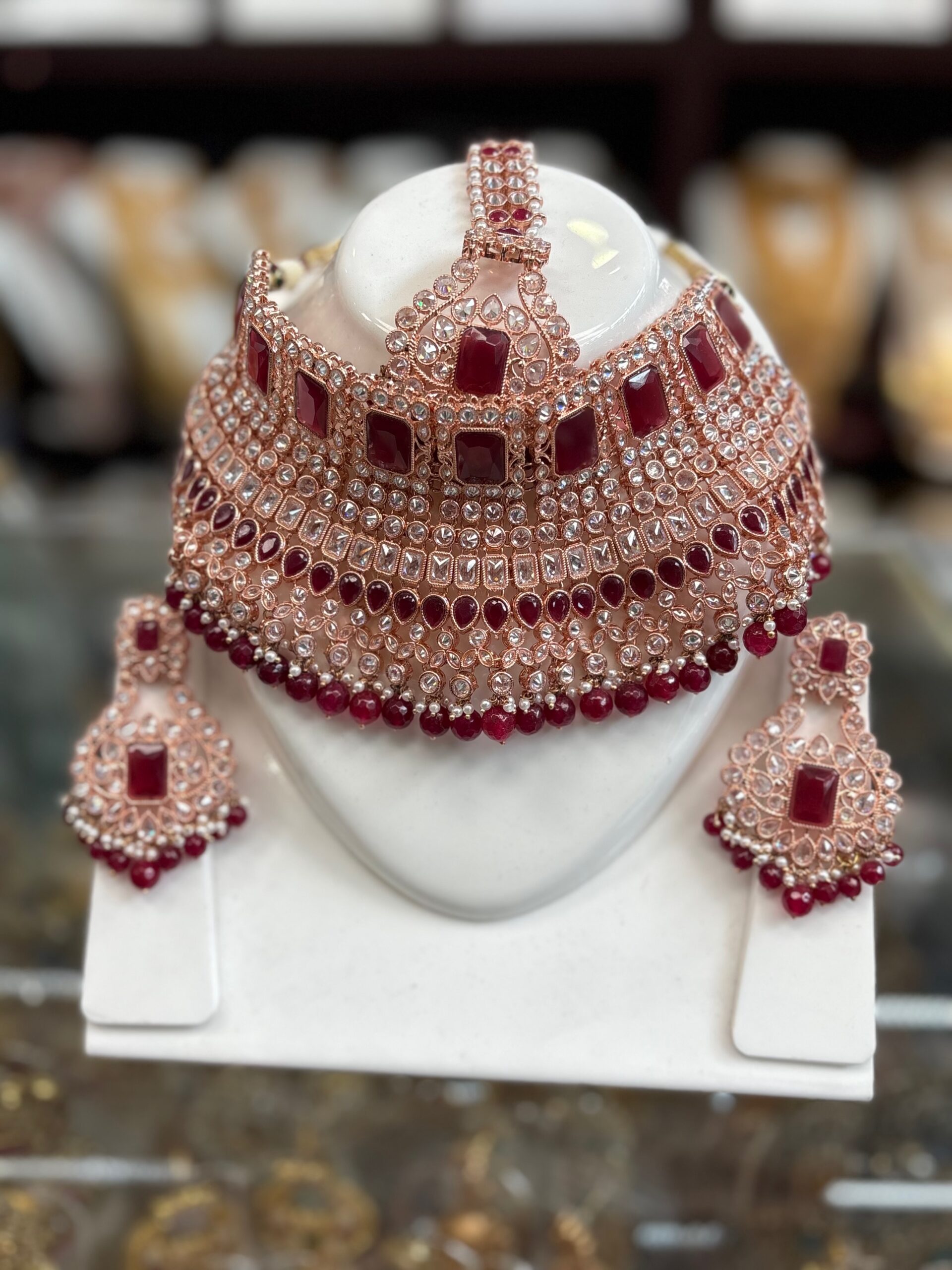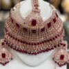 Maroon Red Kundan White Stone Choker Necklace Earring Manng Tikka Indian Jewelry Set